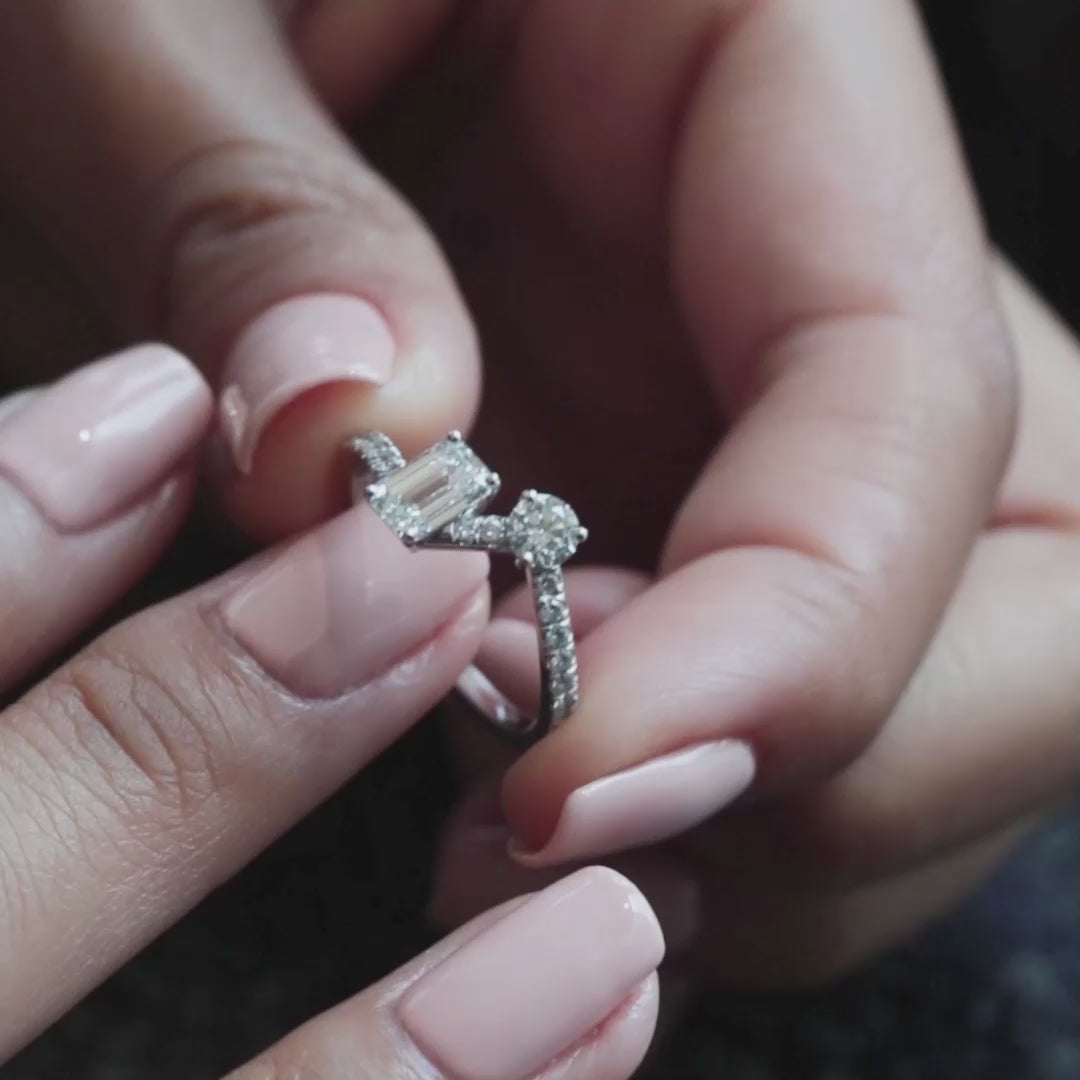 Make a unique yet powerful statement with this toi et moi ing. An "ode to liberating and free love," it features two focal-point lab-grown diamonds which dance upon a paved 18K recycled white gold base.