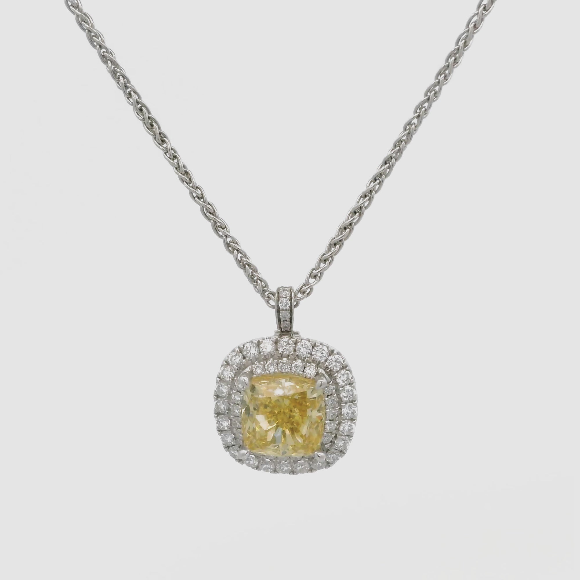 Wonder Rocks showcase IGI-certified color lab-grown diamonds in cushion cut—encircled by a dazzling pavé of white lab-grown diamonds. This exquisite collection is designed for versatility, not only are the color of the 3ct stones customisable, but each set also comes with an 18K white gold chain and an 18K white gold ring band, enabling versatile wear as both pendant and ring.