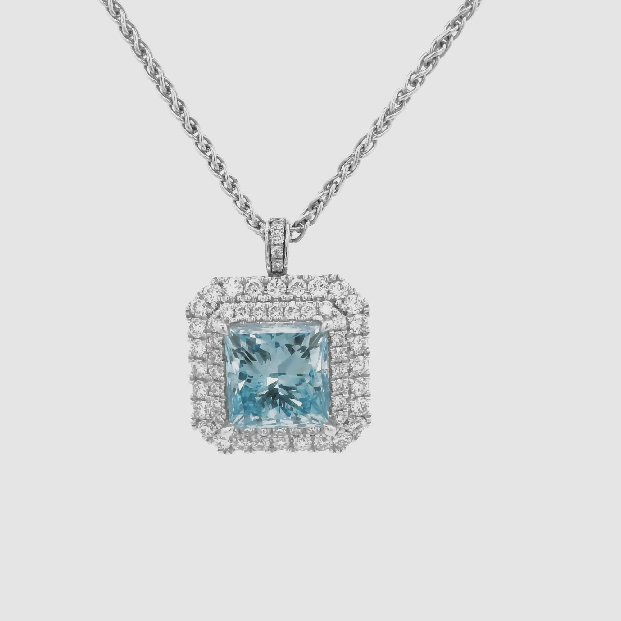 Wonder Rocks showcase IGI-certified color lab-grown diamonds in Princess cut—encircled by a dazzling pavé of white lab-grown diamonds. This exquisite collection is designed for versatility, not only are the color of the 3ct stones customisable, but each set also comes with an 18K white gold chain and an 18K white gold ring band, enabling versatile wear as both pendant and ring.
