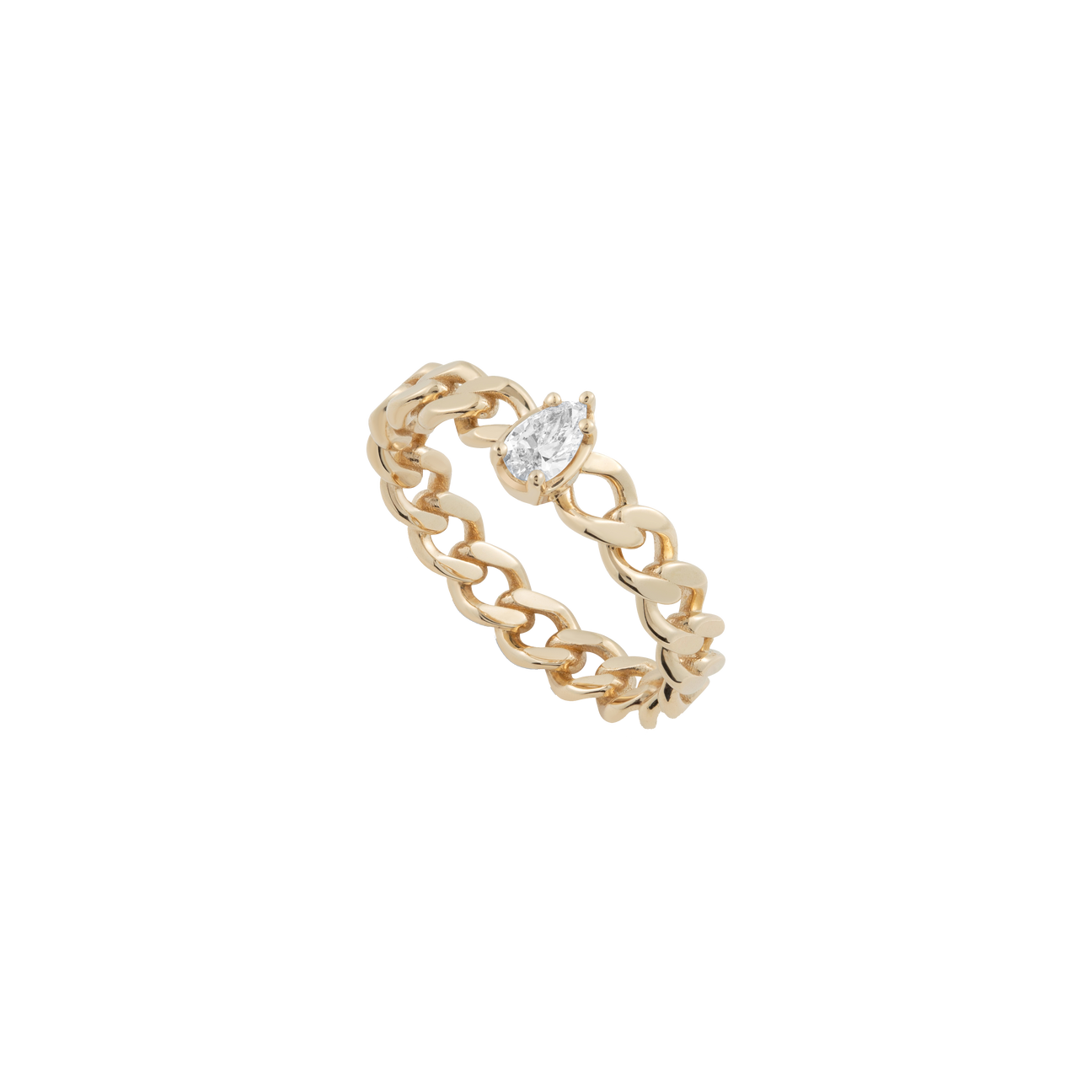 The Chuva Ring by Matilde represents cosmic forces connecting, with its lab-grown pear-shaped diamond, linked with a 14k recycled gold chain band. This is perfect either as a statement ring or worn collected in a ring stack. Bring a sense of balance to your jewelry collection and look for the day.