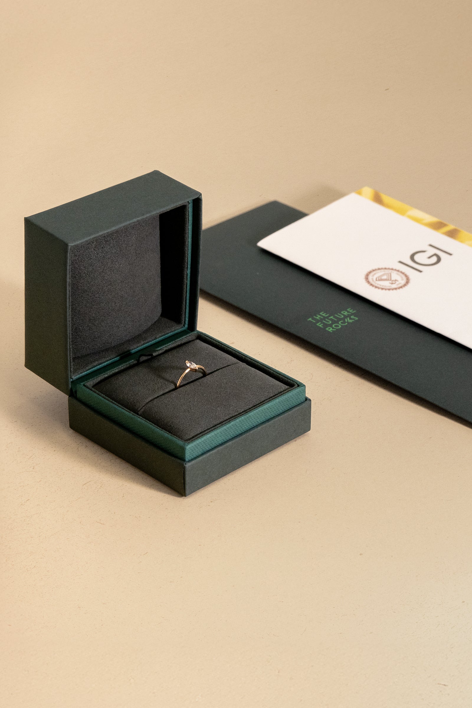 When it comes to a solitaire ring, diamonds are often assessed using the 4Cs: carat weight, cut, clarity, and color. These elements define the diamond's quality and appearance. Pair your choice with a band that complements your finger shape and size, and choose a metal—such as classic yellow gold or refined white gold—that enhances your skin tone. For further guidance, explore our comprehensive guide on the lab-grown diamond 4Cs.