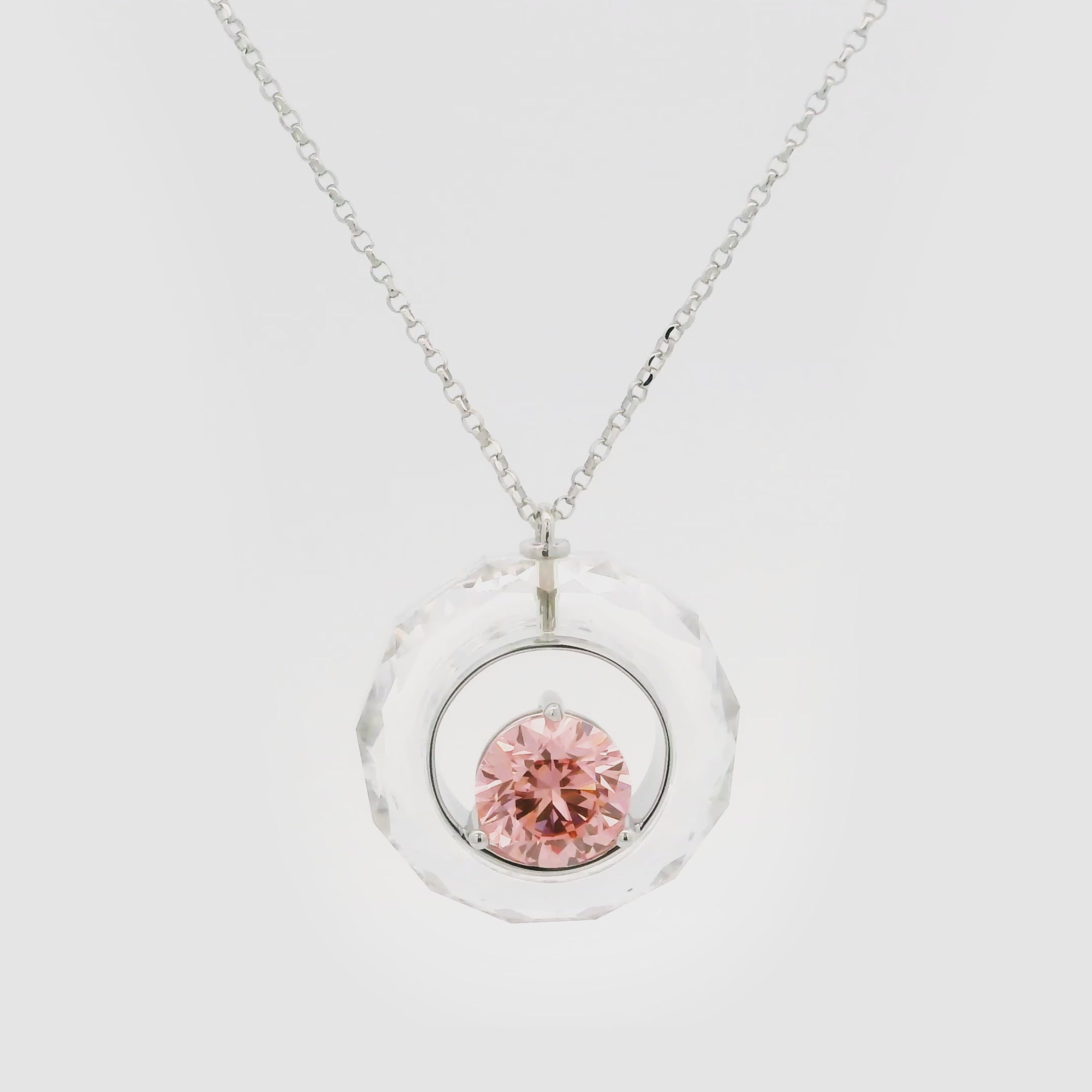 THE NECKLACEは、The Future Rocks のアイコニックなデザインを再構築し、THE RINGのバンドから生まれた先進の素材科学によって実現した、一粒のホワイト ラボグロウン サファイアから精巧に作られた光輪を表現しています。メタル・インレイで飾られたこの光輪の中心には、IGI認定の2ctのホワイト・ラウンドカット・ラボ・グロウン・ダイヤモンド、またはLightbox Jewelryが提供する2ctのピンク・ラウンドカット・ラボ・グロウン・ダイヤモンドがエレガントにセットされ、輝きのハーモニーを奏でます。89時間という長い時間をかけて丁寧に仕上げられ、すべてのファセットとアングルがダイヤモンドの輝きを増幅させ、最終的に13カラットのダイヤモンドが、シンメトリーで洗練された完璧なハーモニーを奏でます。